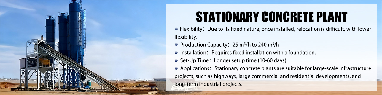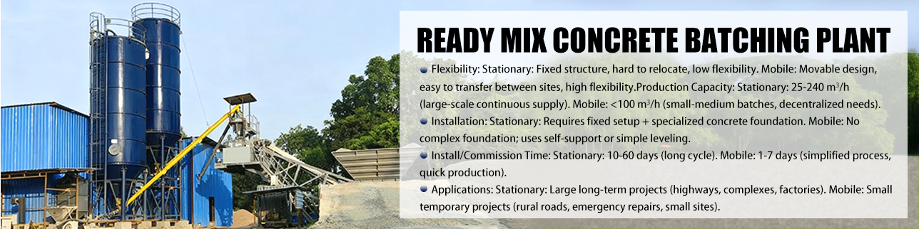 We provide Stationary Concrete Plant, Mobile Concrete Plant, Ready Mix Concrete Plant and Precast Concrete Plant. You can choose the appropriate type based on the project type, usage location and production capacity requirements.
