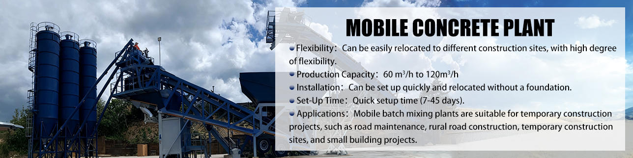 Features: Equipped with mobile tires, this type of concrete mobile plant can be relocated efficiently, requiring only half a day for disassembly. Once dismantled,it can be transported to a new site and reassembled within a day, making it an excellent choice for projects that demand flexibility and rapid site transitions.